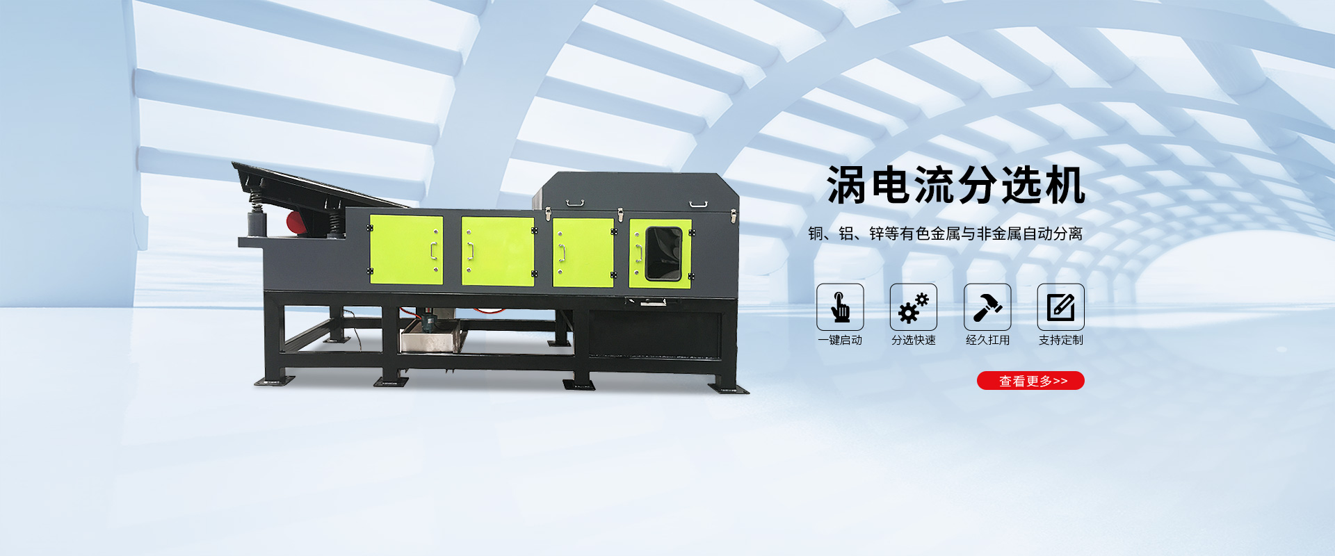 石家莊北澤楊機械廠作為生產渦電流分選機、廢鋼固廢尾料處理流水線、金屬分選機、固廢尾料不銹鋼分選機、破碎機、書本切膠機,書本切膠去皮機廠家,一直都心系廣大用戶們的需求,努力將手中的工作做的好,幫助廣大用戶們進行日常工作。 我們建廠多年來,總是認真對待我們的客戶,我們真誠的期......